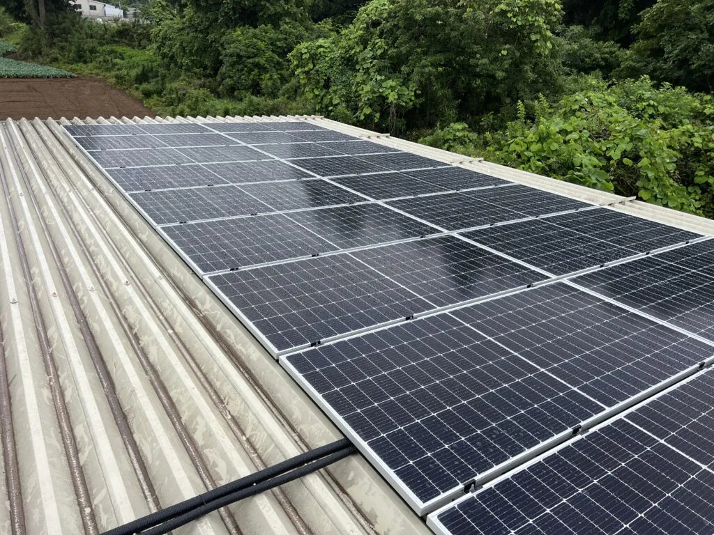 機械稼働により電力負荷の高い金属加工工場様へ、284枚のパネル導入を行いました。 既存の工場屋根をフル活用し、年間10万kWhを超える電力を創出。